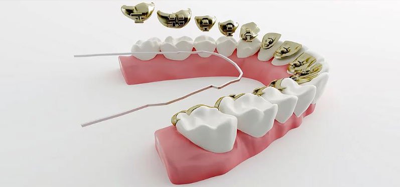 Este tratamiento consiste en la colocación de brackets en la cara interna de los dientes, cumple las misma función que los brackets convencionales, con la diferencia de que éstos no son apreciables a la vista, pasando completamente desapercibidos.